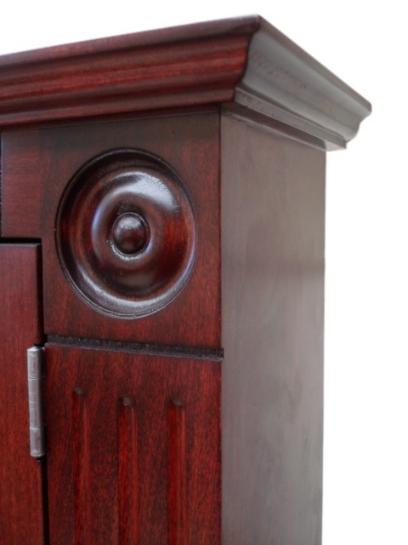 A classic Rosette Medicine Cabinet . Sturdy wood construction features a spacious cabinet behind a mirror door. Inside are adjustable wood shelves to suit your specific needs.